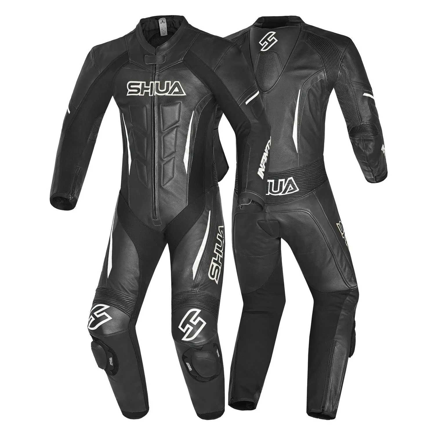 SHUA INFINITY TUTA MOTO PELLE 1PC UOMO NERO BIANCO