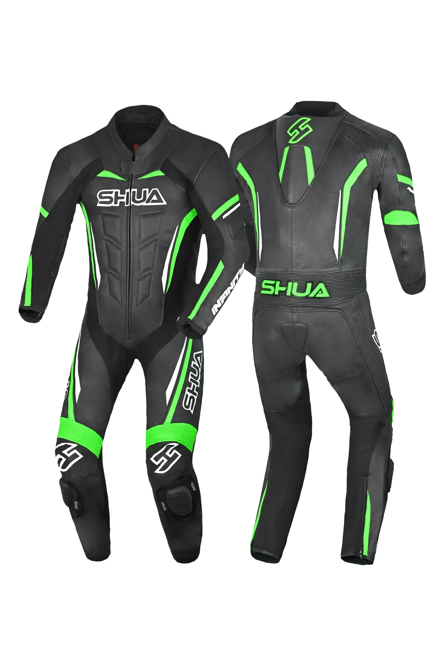 SHUA INFINITY TUTA MOTO PELLE 1PC UOMO NERO VERDE